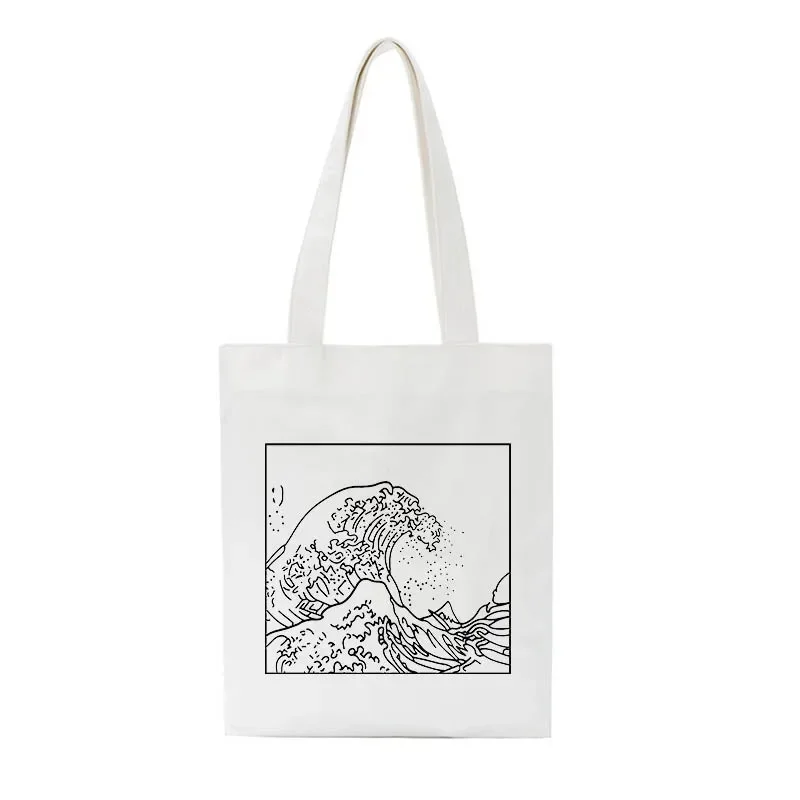 The unique wave artwork adds a bold, cultural touch to any outfit — from minimalist streetwear to casual jeans-and-tee combinations. Strong stitching and reinforced handles ensure long-lasting durability, even with frequent use.