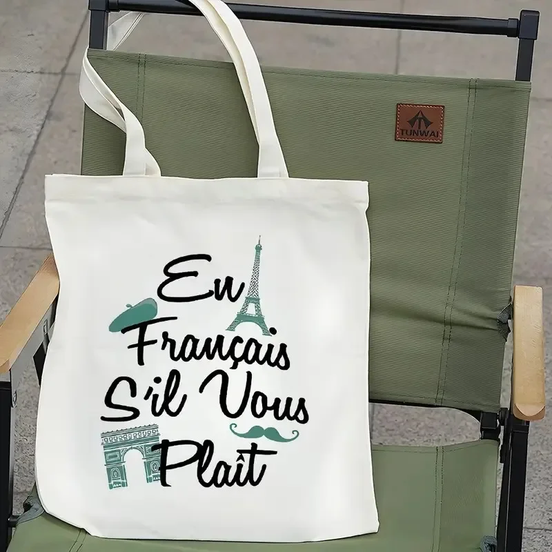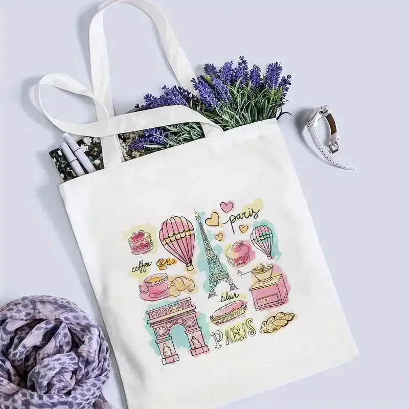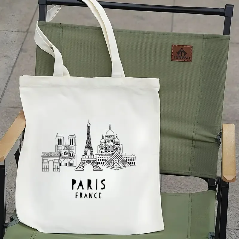 Stylish Paris‑inspired canvas tote with roomy interior and comfortable shoulder straps — perfect for daily errands, travel, shopping or as a gift for city‑style lovers.